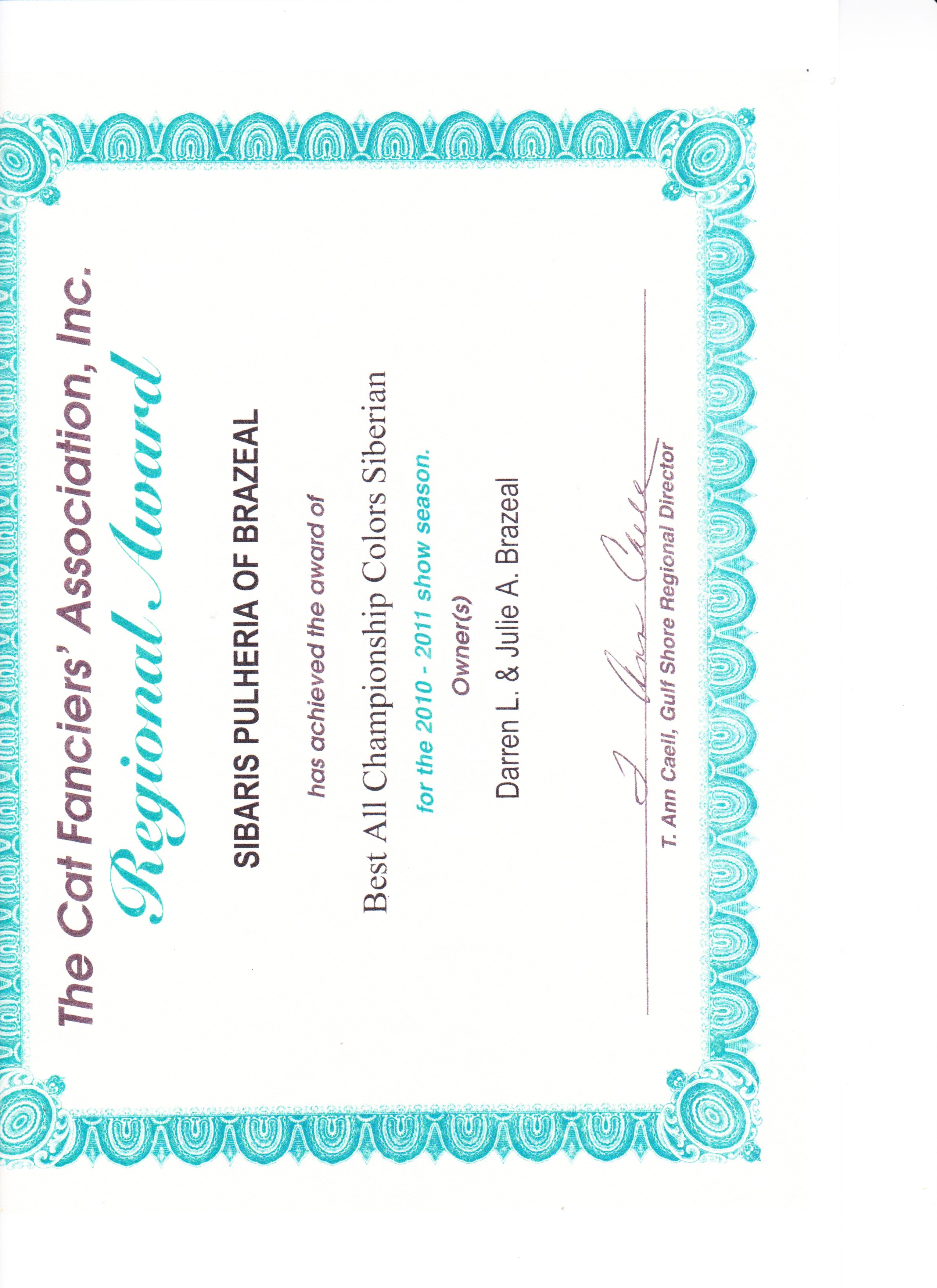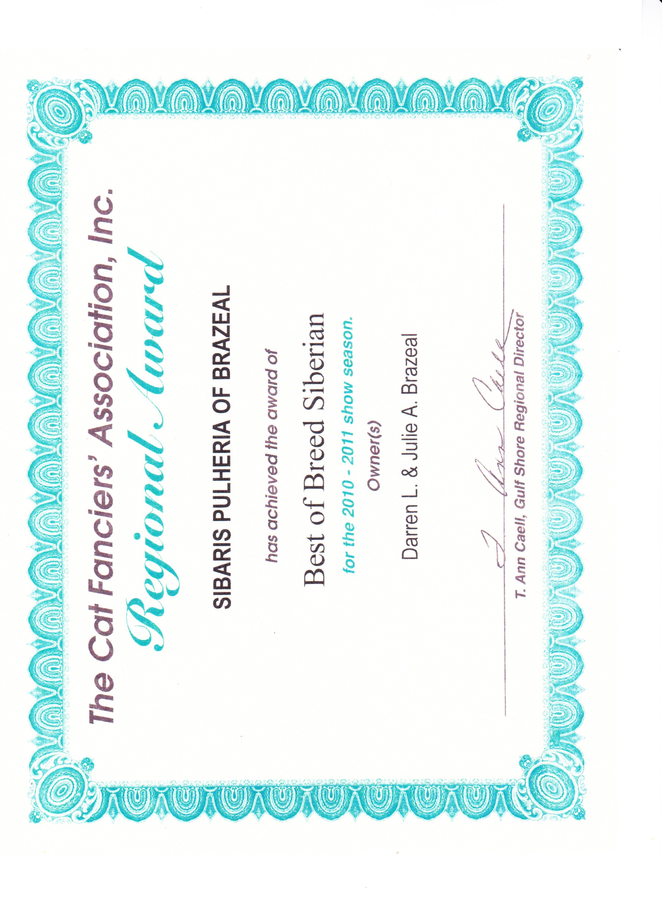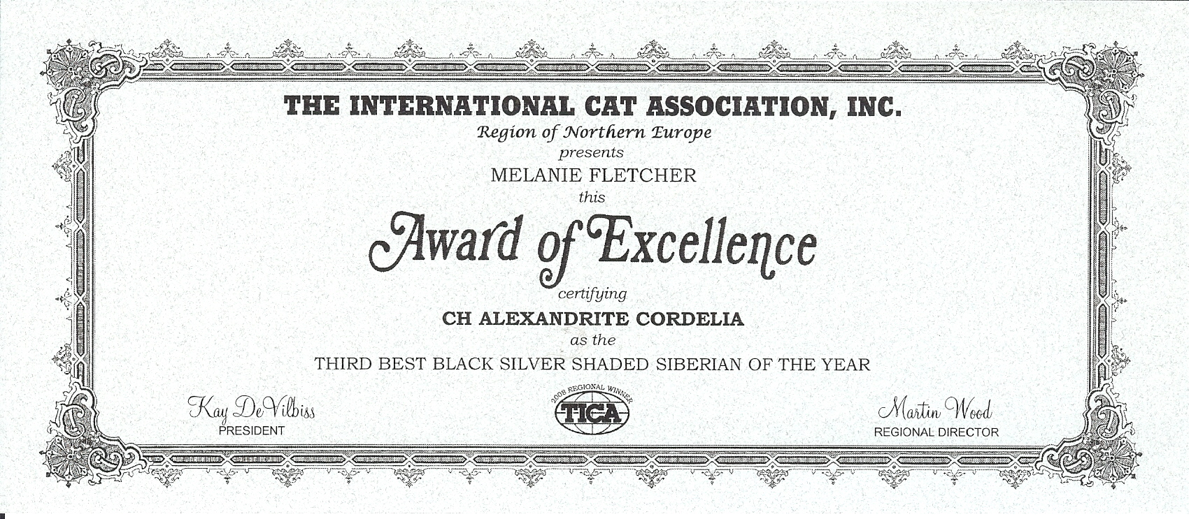 Georgia came to us from Maria Bunina of Musrafy Siberians and like all Maria's kittens, has an excellent pedigree of 100% Russian relatives. A big thank you to Maria for introducing us to the Siberian cat breed and letting Georgie join our family.