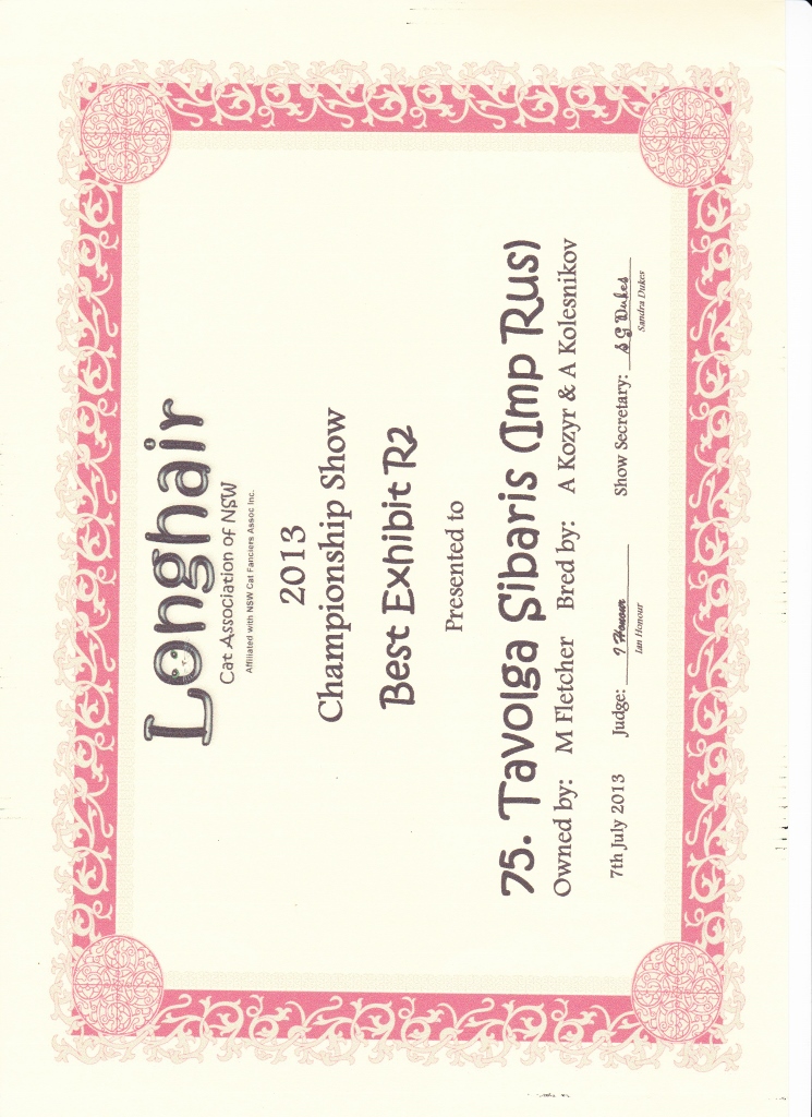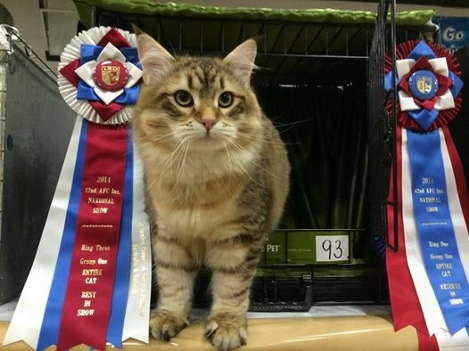 Belka did fabulously well at her first show as a kitten, gaining a Best of Breed in a strong class of Siberians and an 8th and 13th place out of 52 Group 1 kittens at the 2014 ACF National show. Well done Belka! Belka is now a show Champion.
