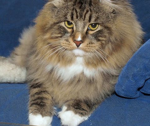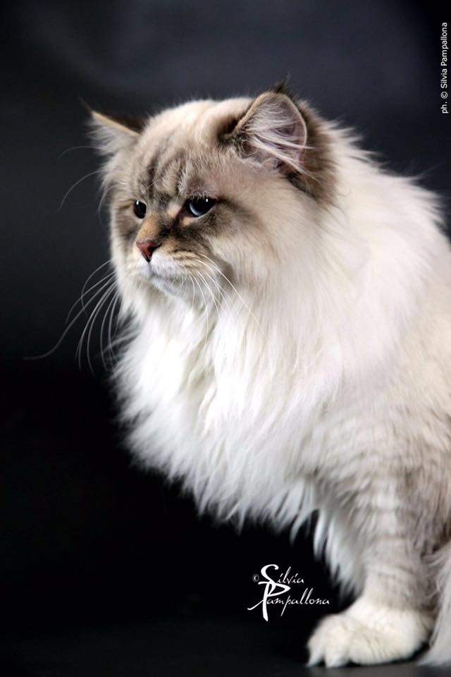 Hamilton has a powerful build with thick boning and a massive head to match. He has wonderful conformation and a luxurious thick coat and abundant mane which makes him look like a white lion. His beautiful blue eyes match his blue tabby point markings and contrast his creamy base coat perfectly.
