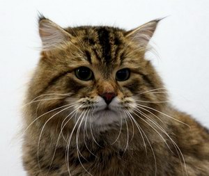 Titan was a baby from our first litter (you can see his baby photos on our kittens page). He was the largest of the litter and is an extremely sweet and loving boy. He is an excellent example of the Siberian breed. He has great heavy boning, lovely rounded features and a beautiful thick coat. Titan is now the main stud at our cattery. He passes on his excellent type and sweet temperament to all of his kittens.